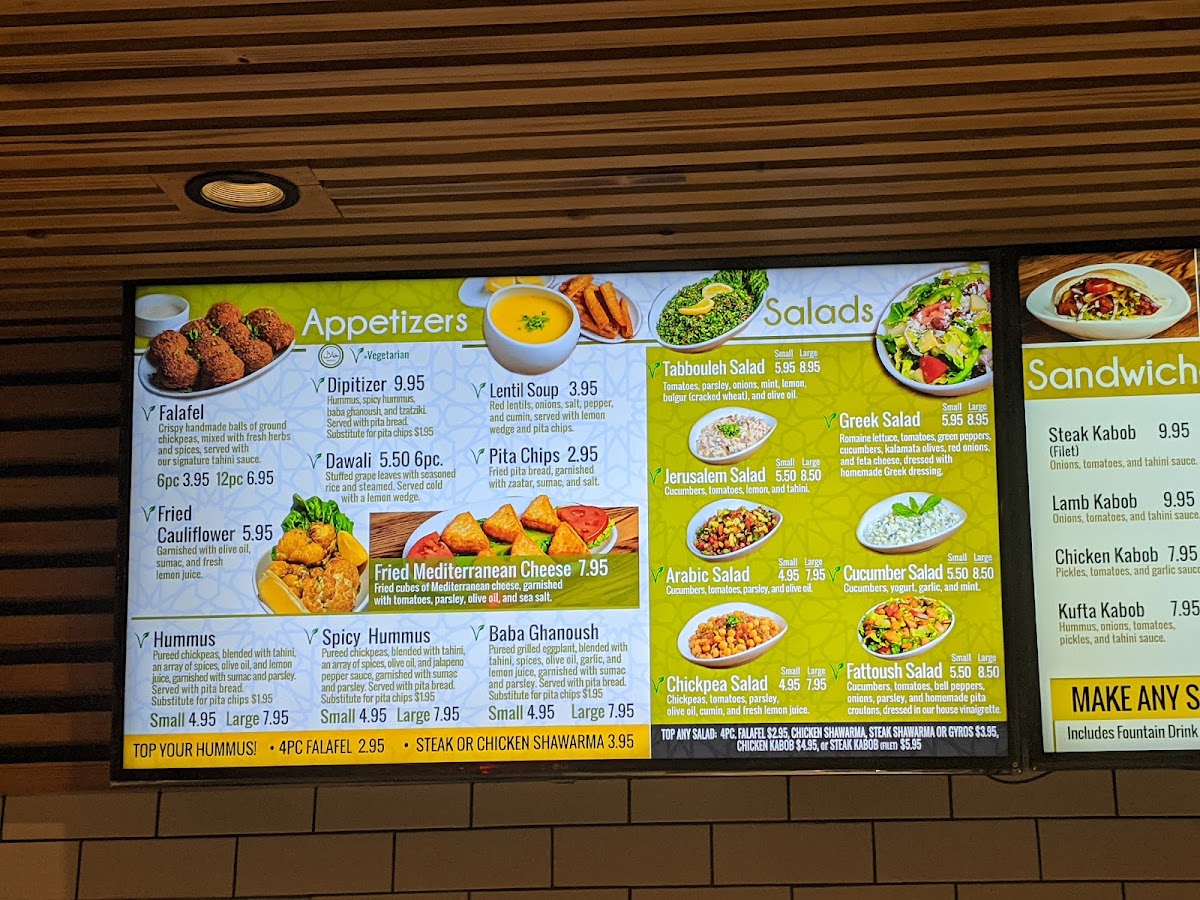 You’ll find highlights like the freshly made falafel served crispy and warm, classic chicken shawarma slices cooked on a vertical rotisserie, and filling bowls and wraps combining tender meats with vibrant salads and signature sauces. Sides such as fried cheese, hummus, and fattoush salad complement the plates, creating a satisfying and balanced experience. For something to cool down with, refreshing options like mint lime drinks pair well with the warm spices of the food.